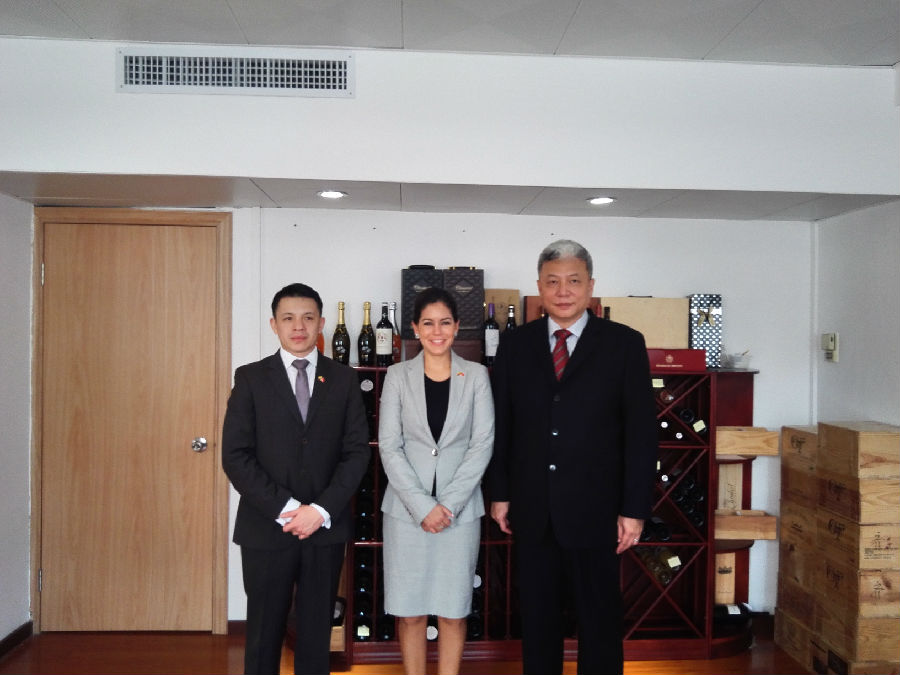 2016年3月1日,厄瓜多尔驻广州总领事馆,马莲娜(Mariella Molina)总领事和荣国发(Ronnie Almeida)商务领事专程到访中国国际投资促进会广州联络处、广东信诺国际投资促进中心,并与中国国际投资促进会副秘书长兼广州联络处主任、广东信诺国际投资促进中心主任杨阳进行了友好交流。